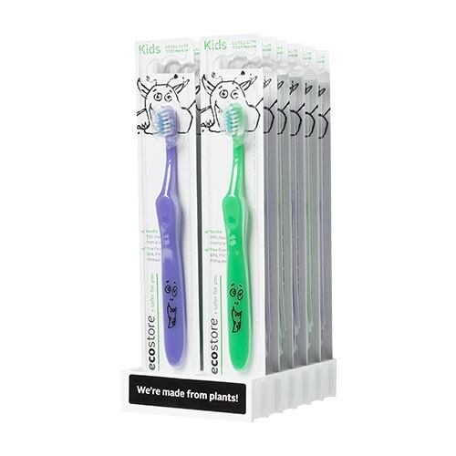 持ち手に植物由来プラスチックを使用したエコ歯ブラシ。子どもから大人まで使いやすい小さめヘッドで隅々まで歯垢を除去!